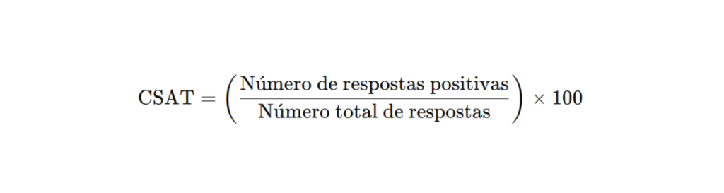 A fórmula básica para calcular o CSAT envolve a soma das respostas positivas de um questionário de satisfação, dividida pelo total de respostas recebidas, multiplicada por 100 para obter uma porcentagem.