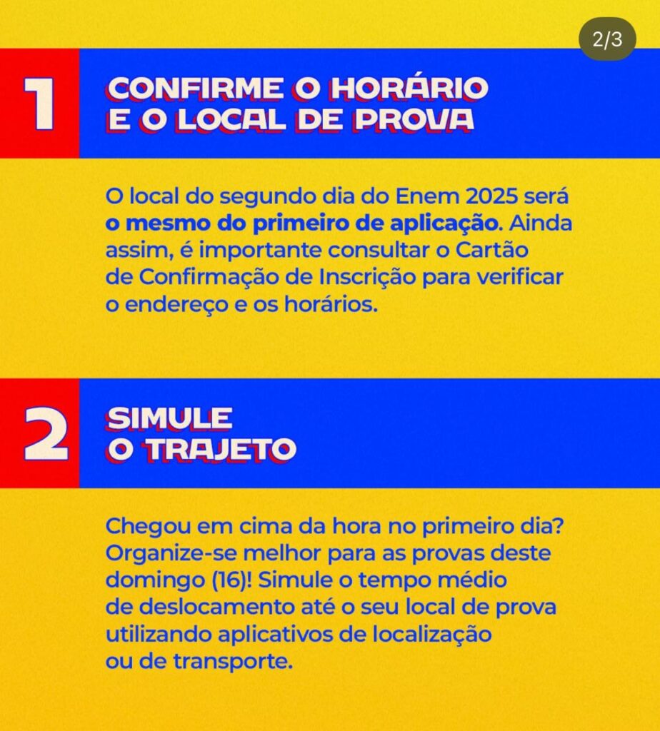 João Marcondes | 14/11/25Enem 2025: veja as principais dicas para não se atrasar no segundo dia de provas, que ocorre em 16 de novembro e aplica Ciências da Natureza e Matemática.