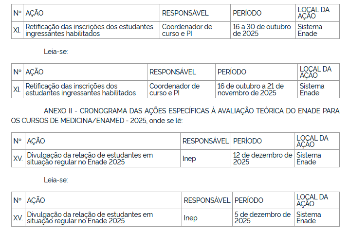 Inep retifica cronogramas do Enade e do Enamed 2025; veja o que muda