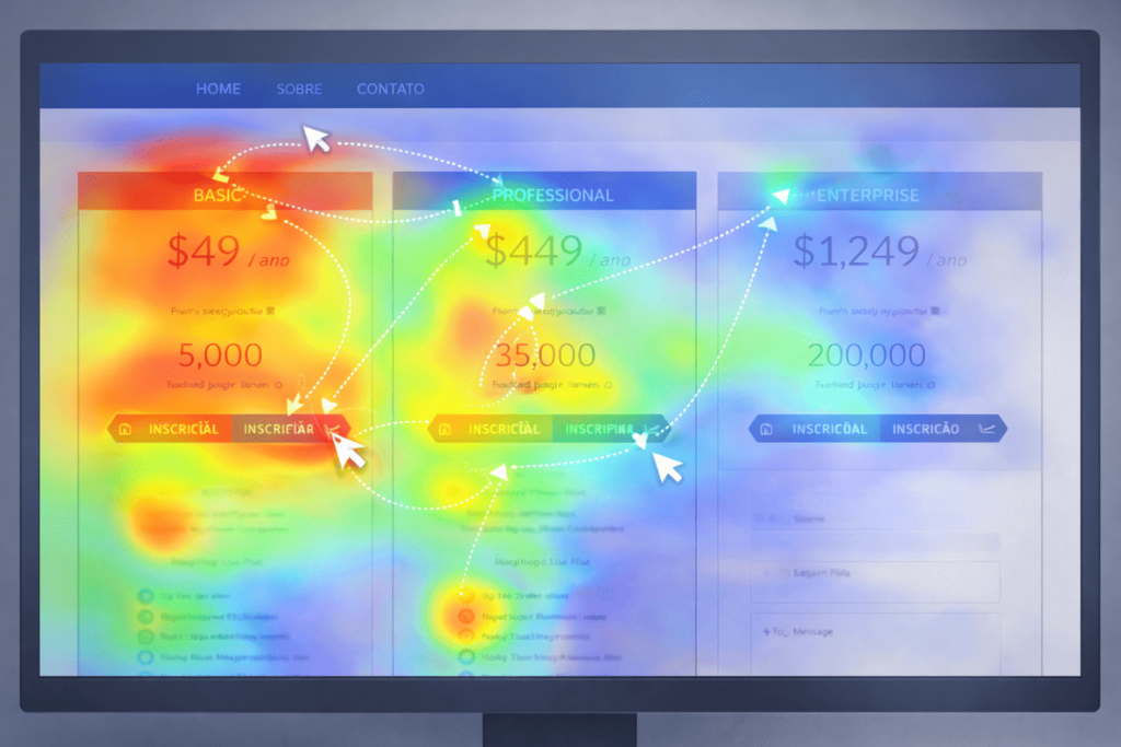 Aplicado em contextos como sites, plataformas, páginas de vendas, landing pages, aplicativos e até e-mails, o mapa de calor mostra padrões de navegação que nem sempre são perceptíveis com ferramentas tradicionais de analytics.