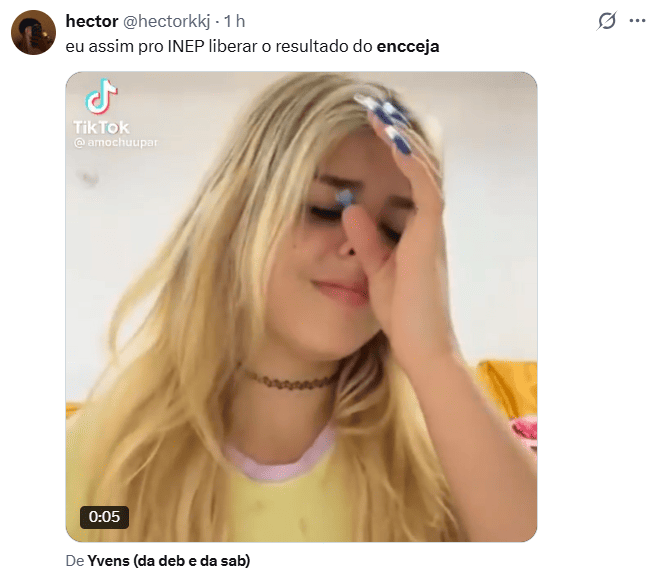 A divulgação dos resultados do Encceja 2025 agitou o X, com candidatos compartilhando reações que rapidamente se transformaram em memes. Veja alguns dos mais engraçados: