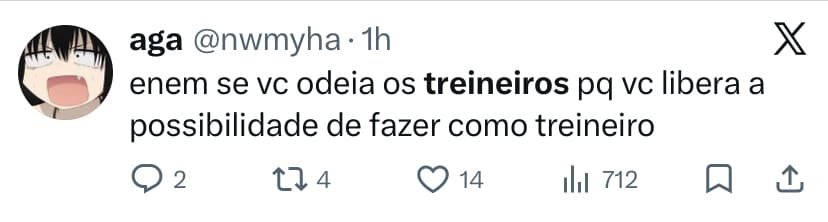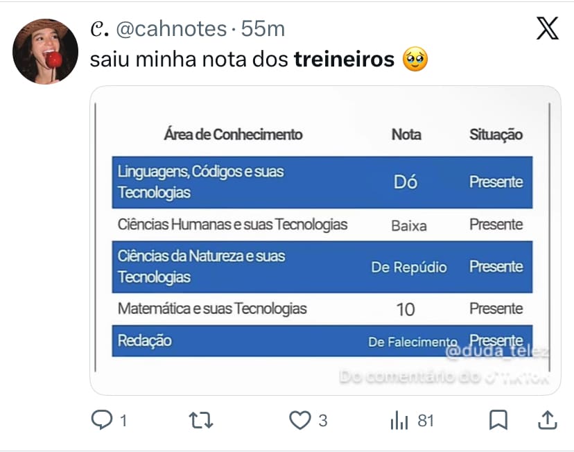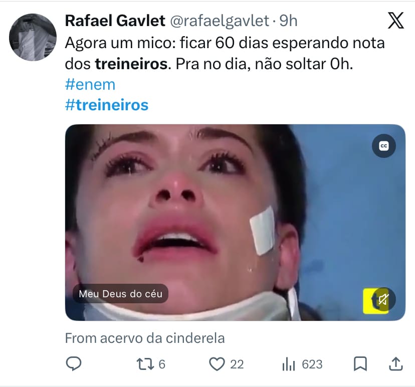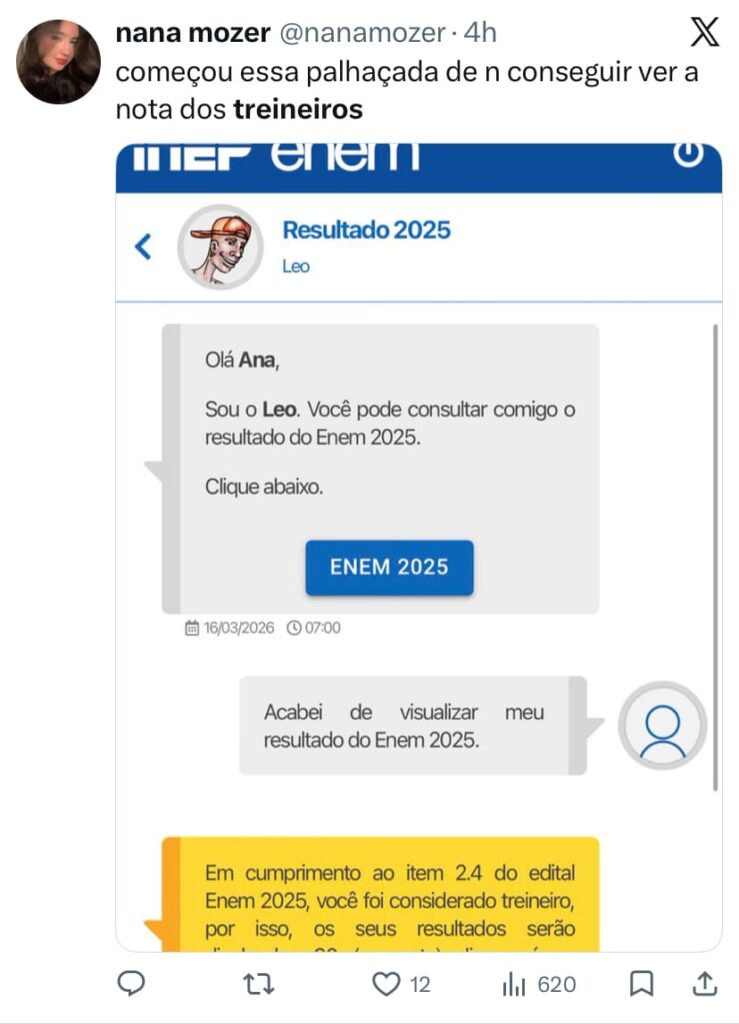 A divulgação da nota do Enem 2025 para treineiros gerou diversos memes na rede social X (antigo Twitter), na manhã desta segunda-feira (16/03).