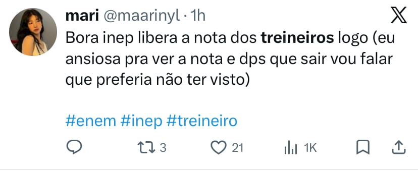 A divulgação da nota do Exame Nacional do Ensino Médio 2025 para treineiros gerou memes no X. Veja reações dos candidatos e como consultar o resultado.