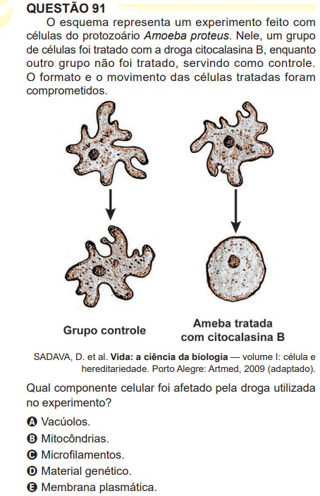 A ameba tratada com citocalasina sofreu alteração em seu formato e em seu movimento, deixando de emitir pseudópodes, evento relacionado aos microfilamentos de actina, que têm localização periférica no citoesqueleto.
