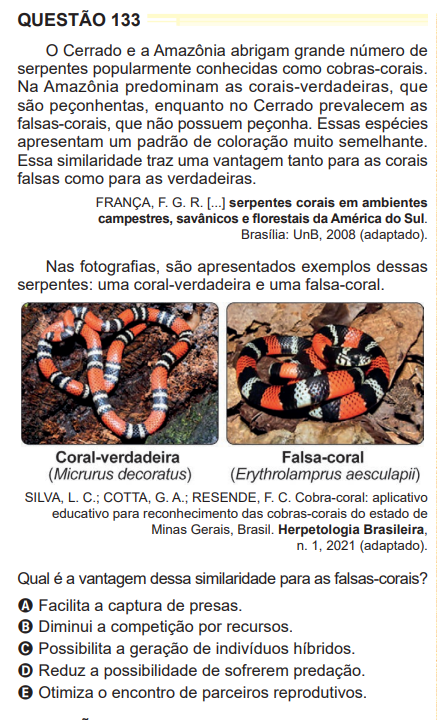 É um caso de mimetismo. Por se parecer com um predador perigoso, a coral-falsa é menos atacada e menos predada.