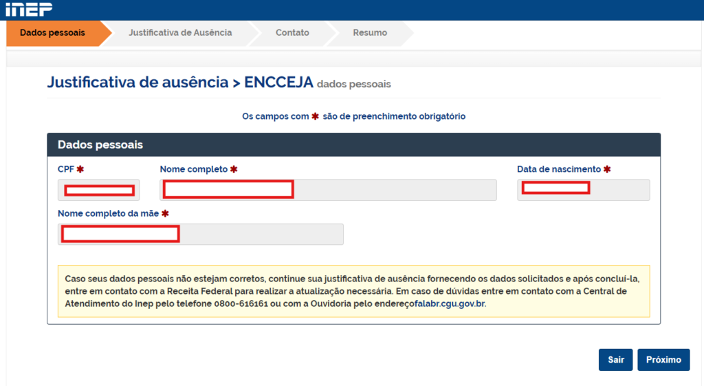 A partir daí, você deve conferir os campos de preenchimento obrigatórios e clicar em “Próximo” para dar andamento na justificativa.