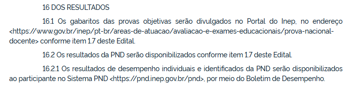 Os gabaritos preliminares estarão disponíveis no Portal do Inep, na página oficial do exame. Para acessar, o participante deve entrar no site inep.gov.br e selecionar a área da Prova Nacional Docente (PND).