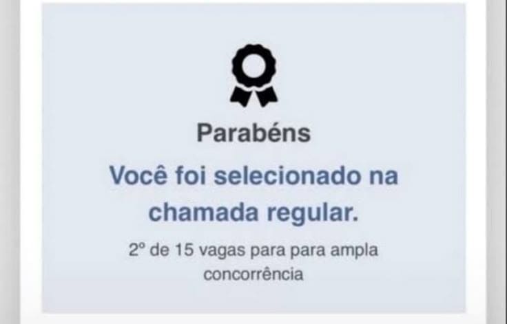 Depois, entre no Boletim do Candidato e verifique a sua classificação nas duas opções de curso selecionadas. Caso tenha sido aprovado, aparecerá a mensagem “Parabéns, você foi selecionado na chamada regular”.