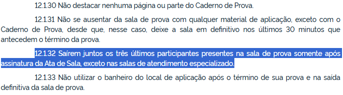 Uma das regras menos lembradas determina que os três últimos participantes na sala de prova devem sair juntos, somente após a assinatura da Ata de Sala.