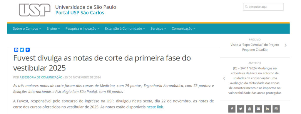 Uma dúvida frequente e que gera bastante ansiedade em quem faz a prova é quando sai a nota de corte da Fuvest 2026.