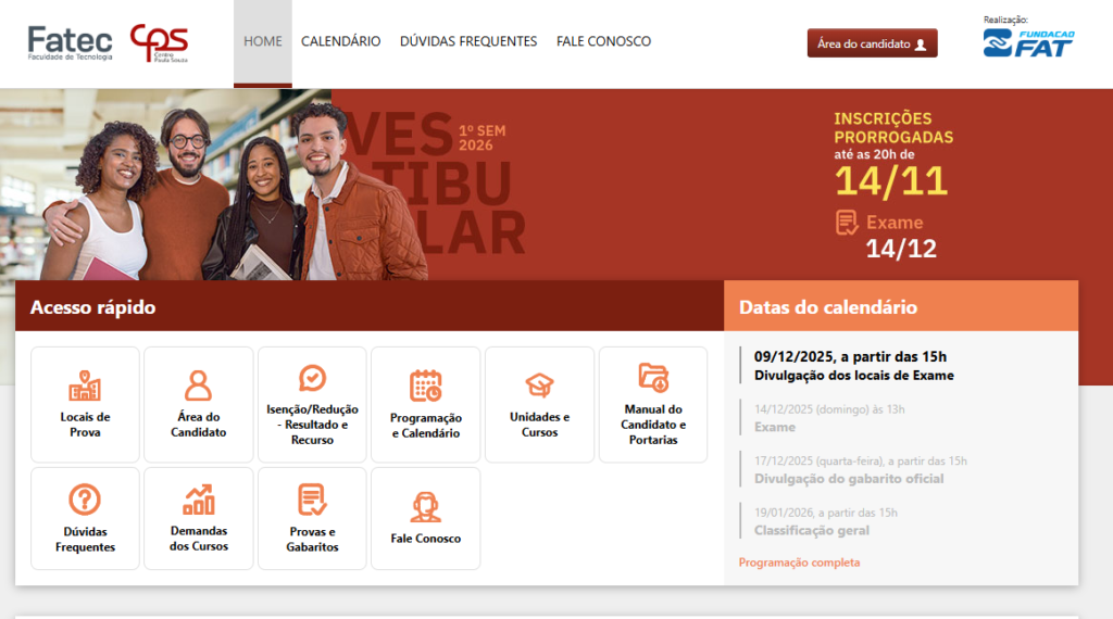 Natália Plascak | 14/12/25Saiba quando sai o gabarito da Fatec 2026, onde consultar o resultado oficial e confira as principais datas do calendário do vestibular.