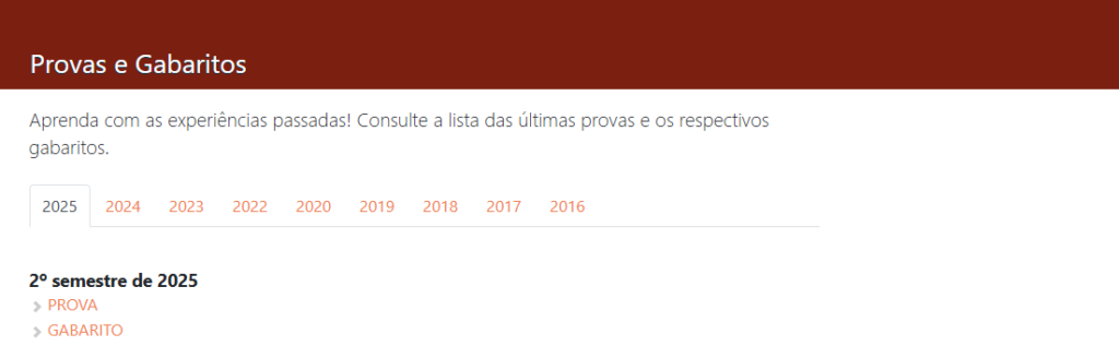 Depois, é só clicar em Provas e Gabaritos e verificar o processo seletivo do ano de 2026.