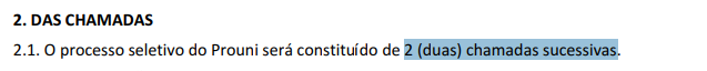 Trecho do edital do Prouni 2026, com a informação sobre as chamadas do processo seletivo