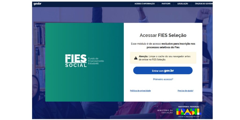 A complementação deve ser feita exclusivamente pelo sistema Fies Seleção, conforme determina o Edital nº 1/2026, publicado pelo Ministério da Educação (MEC).